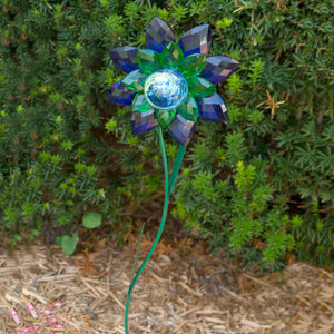 Illuminarie Gem Flower stakes feature glow crystals with a hand-blown glass globe that capture light energy during the day, then release a soothing glow for hours after dusk! The petals of the flower are made from vibrant glass gems. Works indoors or out.