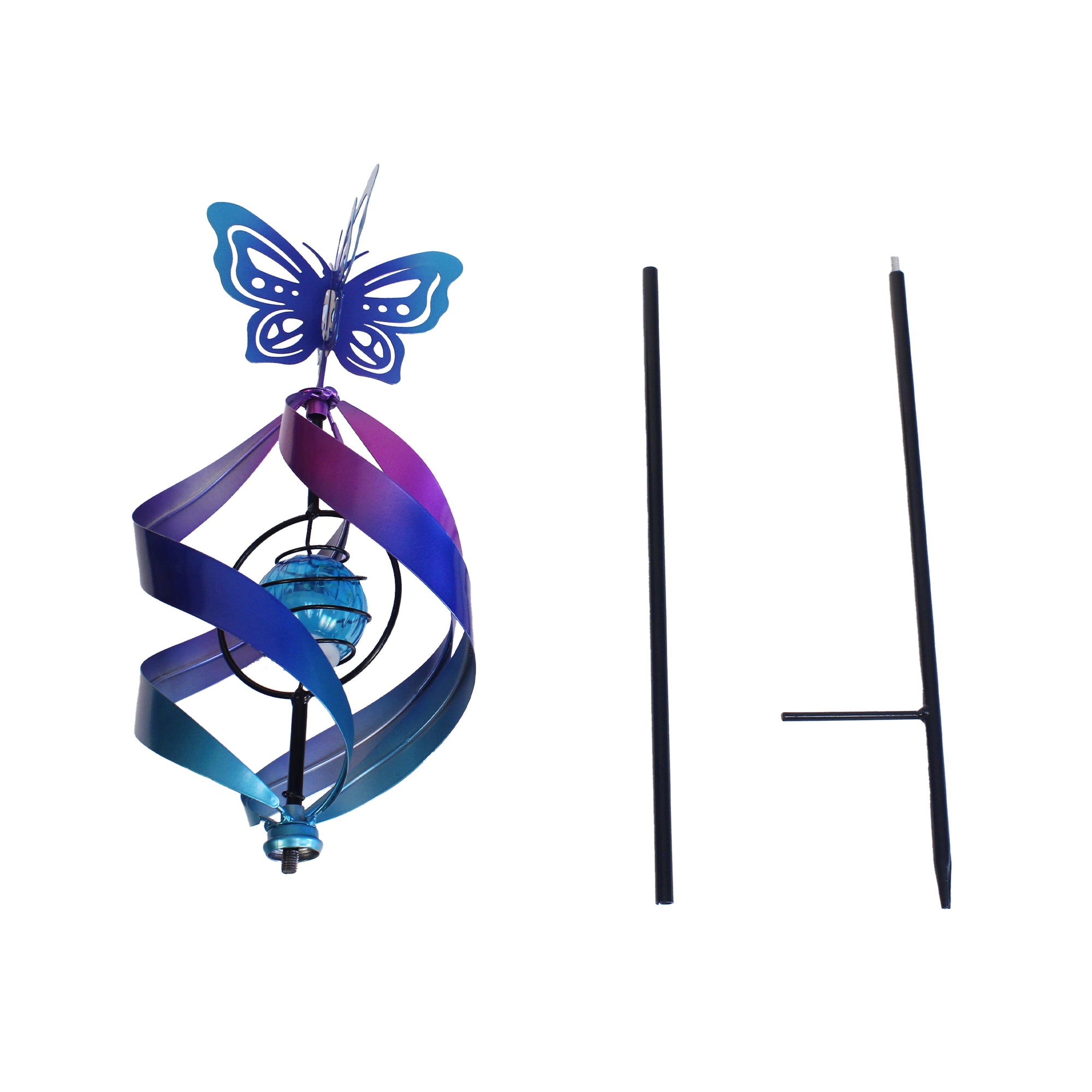 Part wind spinner, part solar light, but 100% fun! Our Windweaver Solar Spinner Stakes combine garden whimsy, with kinetic motion and nighttime illumination in two eye-catching motifs. The 2" glass globe at the epicenter of the spiral spinner is mated to a miniature solar light module with an integrated light strand containing four pulsating, warm-white LED's. The multi-section steel ground stake included allows for varying display heights. The colorful four-sided laser cut butterfly and hummingbird silhouettes adorning the top of the spinner utilize every last bit of wind that comes its way to create seamless movement. At 40" (fully assembled) it can serve as a focal point or accent piece in any landscape setting.