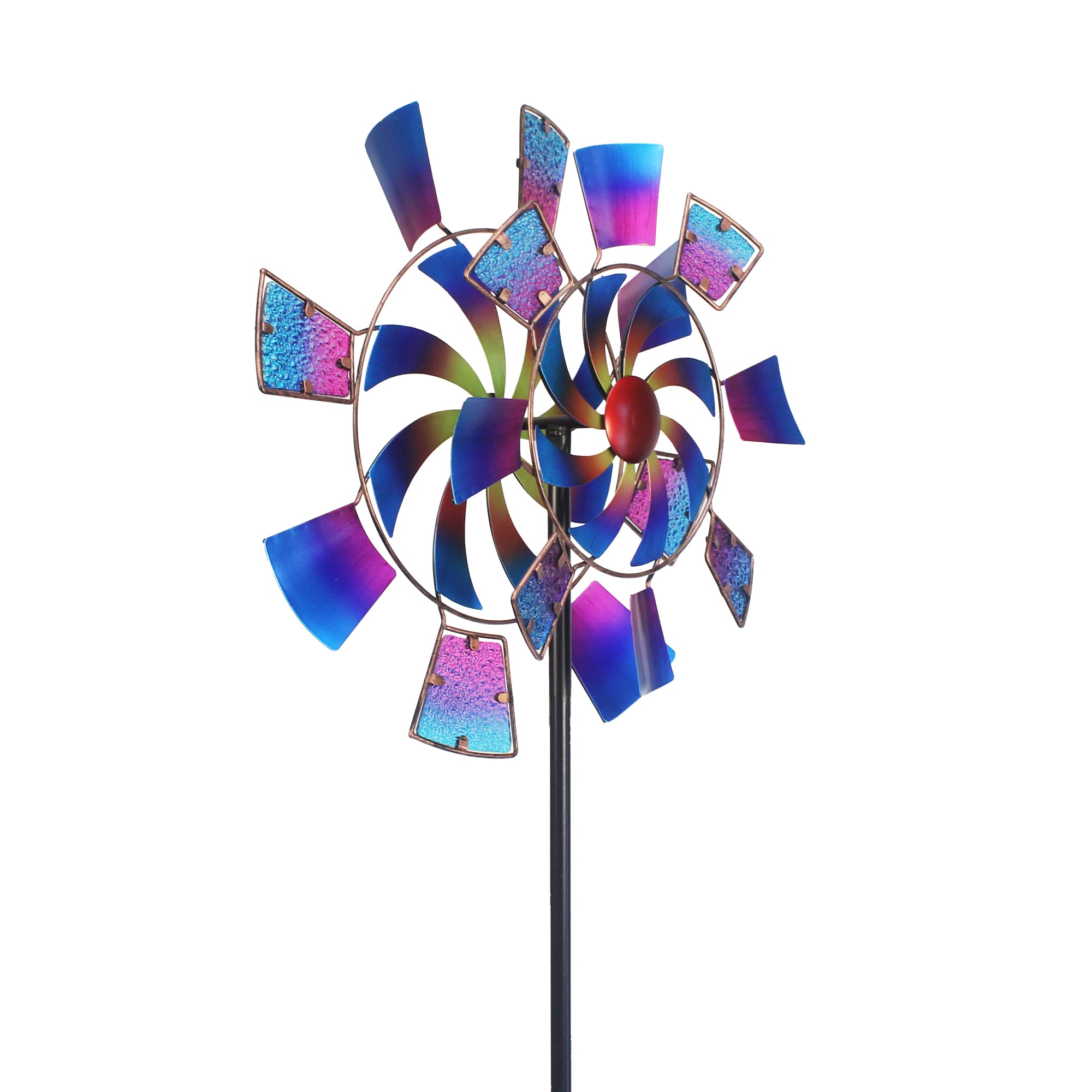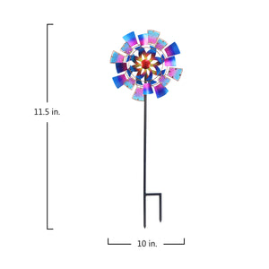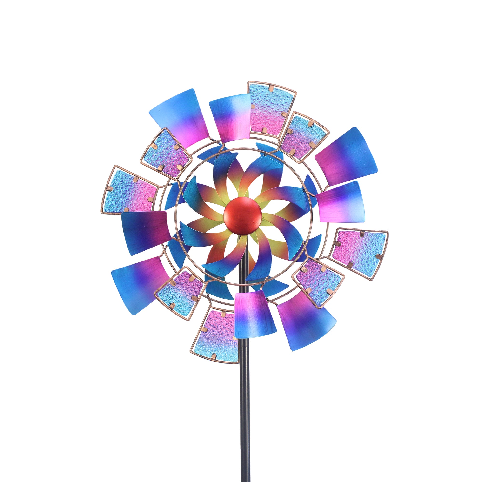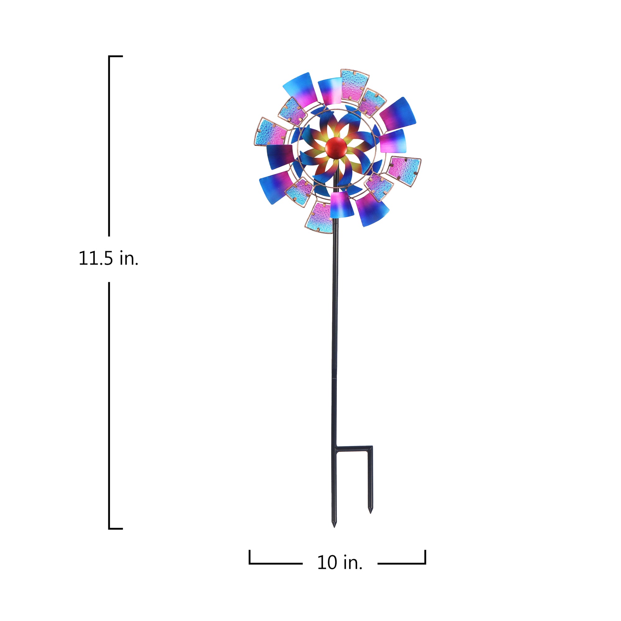 Both eye-catching and spellbinding, the Byzantine Dual-Motion Windwheel will add brilliant color to any outdoor setting while captivating the senses with this smooth, counter-rotational movement. Combining elements of steel and glass, each piece is meticulously crafted by hand in accordance to the highest quality standards. The rotors adorning the top are precision balanced to ensure smooth, true motion, while the self-lubricating sealed roller bearings require no after purchase maintenance. The multi-section steel ground stake requires no tools for assembly and allows for varying height options. The weather and fade resistant finish provides protection from the elements and ensure years of use and enjoyment. At 45" (assembled height), the Byzantine Dual-Motion Windwheel is sufficiently tall for use as a focal point in a garden or flowerbed, yet stout enough to make a great accent piece in a large landscape island. Angle the Windwheel toward the direction the wind most commonly moves through your yard and enjoy its riveting, hypnotic motion.