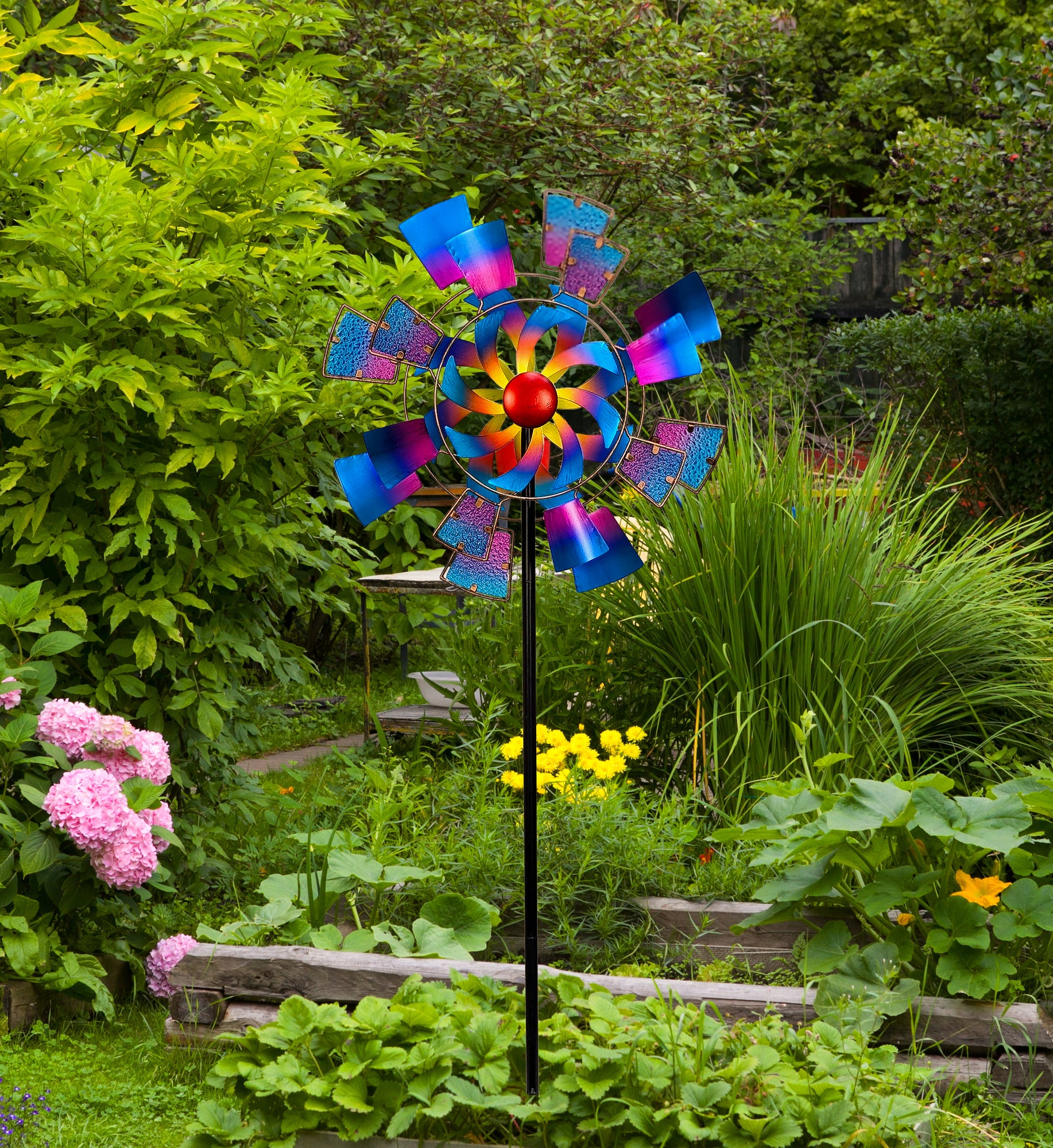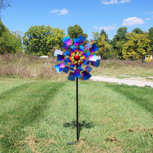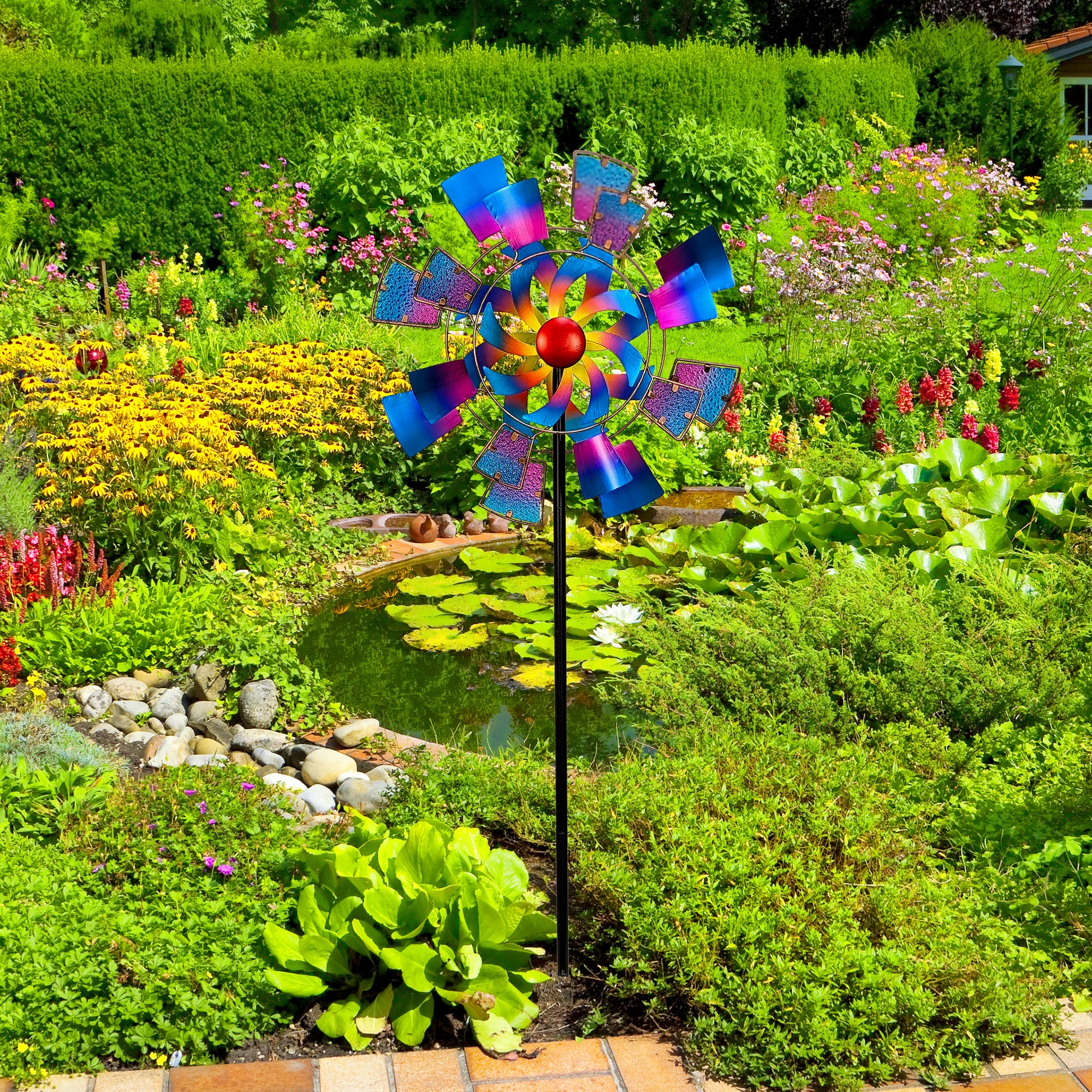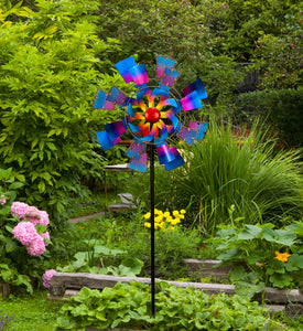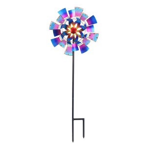 Both eye-catching and spellbinding, the Byzantine Dual-Motion Windwheel will add brilliant color to any outdoor setting while captivating the senses with this smooth, counter-rotational movement. Combining elements of steel and glass, each piece is meticulously crafted by hand in accordance to the highest quality standards. The rotors adorning the top are precision balanced to ensure smooth, true motion, while the self-lubricating sealed roller bearings require no after purchase maintenance. The multi-section steel ground stake requires no tools for assembly and allows for varying height options. The weather and fade resistant finish provides protection from the elements and ensure years of use and enjoyment. At 45" (assembled height), the Byzantine Dual-Motion Windwheel is sufficiently tall for use as a focal point in a garden or flowerbed, yet stout enough to make a great accent piece in a large landscape island. Angle the Windwheel toward the direction the wind most commonly moves through your yard and enjoy its riveting, hypnotic motion.