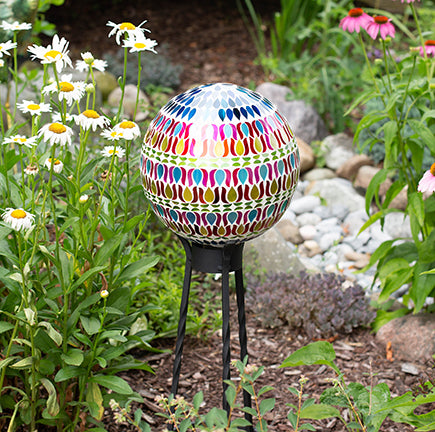 The 10" Cardinal Mosaic gazing globe is both attractive and timeless. Will enhance any outdoor setting. 10" globe fits most globe stands, columns, and pedestals.